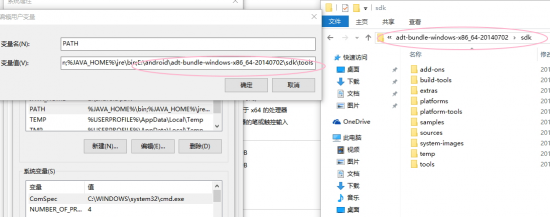 7.将android sdk中的文件夹的绝对路径添加到用户的环境变量PATH中,方法与上述相同,添加值为”E:\android\adt-bundle-windows-x86_64-20140702\sdk\tools”,单击“确定”按钮。
