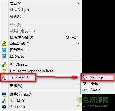 2.在电脑屏幕空白处鼠标右键,选择tortoisegit-settings,就到了配置界面