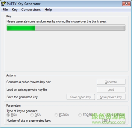 开始-->tortoisegit-->puttygen,进入putty key generator