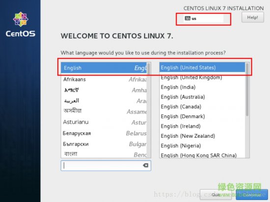 14.选择安装过程中使用的语言,这里选择英文、键盘选择美式键盘。点击continue。(也可下滑选择简体中文)