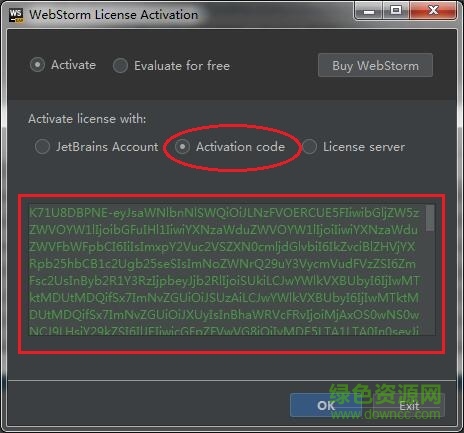 5.选择“Activation code”,将上面加入的一串代码贴到方框中,点击”ok“即可