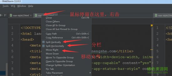 Webstorm垂直分栏,在需要分栏的文件上右击,选着垂直拆分。就可以拖动,形成左右分栏