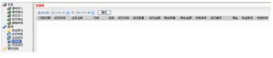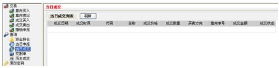 (2)在“查询”选项中有:资金持仓、当日申报、当日成交、交割单和历史成交。
