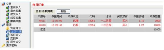 点击查询当日委托,可查询到订单状态为“已撤”和“已报”的订单详情。