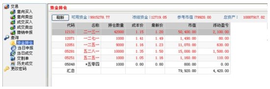 内容显示区主要展现当前持仓的各项明细,包括代码、名称、持仓数量、成本价、最新价、市值、浮动盈亏。