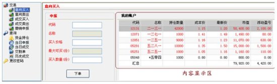 主要由行情列表、申报、交易退出、网站四个功能按钮组成。