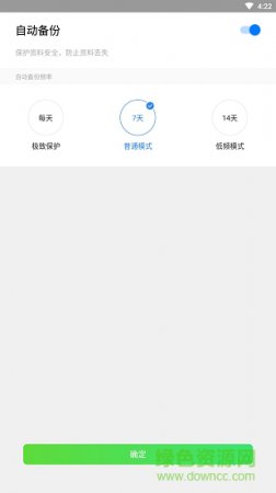 点击主界面右上角“盾牌标识”按钮,进入“自动备份”,根据个人需求设置并开启相关权限后,即可开启自动备份。建议设置每天或7天自动备份,及时备份到云端可避免数据丢失。
