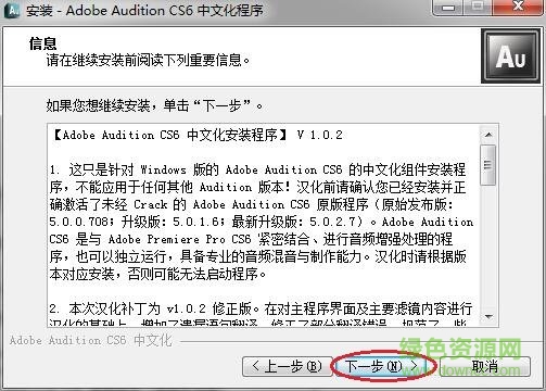 11.最后我们来汉化,双击运行“Adobe_Audition_CS6_汉化程序v1.02修正版.exe”,点击“下一步”