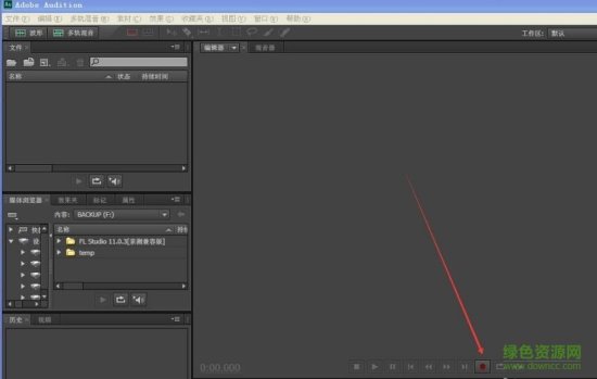 若是单轨录音方式:打开Adobe Audition CS6软件,然后点击红色圆点即可开始录音。
