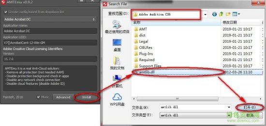 10.点击“Install”,选择安装目录下的“amtlib.dll”文件,点击打开,就完成修改了