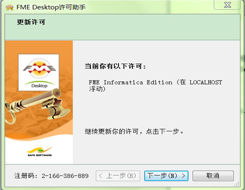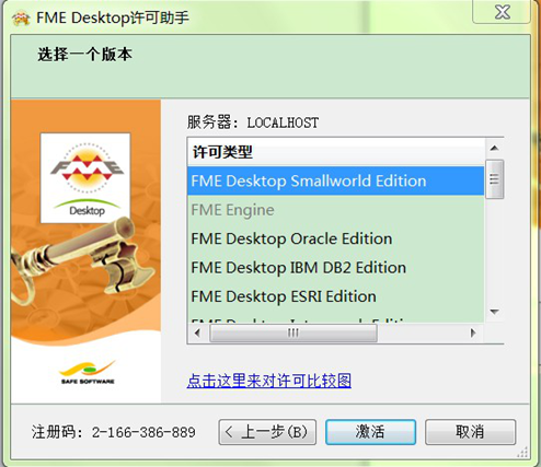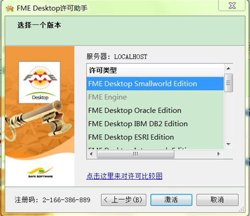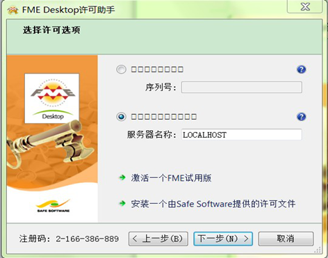 左下角开始- FME Desktop 2012 SP4 (Build 12266)- Utilities- FME Licensing Assistant双击,点击下一步(如图9),选择连接到浮动许可服务器(如图10),选择许可类型,点击激活按钮即可。