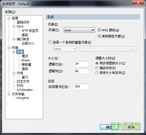 终端选择“Linux”, 勾选“ANSI颜色” 和 “使用颜色方案”,终端颜色配置请见下面后续...