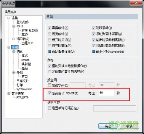SecureCRT连接后如果稍长时间不用就会掉线,往往会造成工作状态的丢失。如下设置可以始终保持SecureCRT的连接: