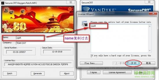 6.将注册机中“name”信息复制到软件界面中(如图),然后点“下一步”