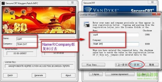8.然后将注册机中的Name和Company信息都复制到软件框中(如图),再点“下一步”