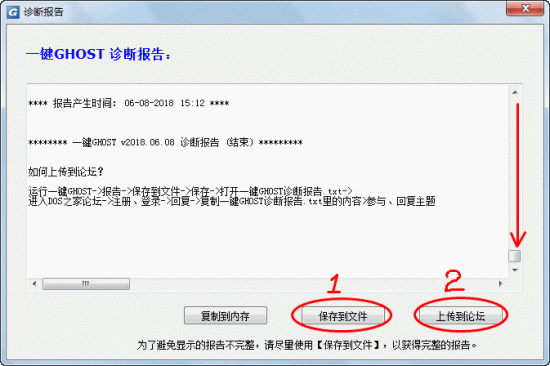 回复时,请复制“一键GHOST诊断报告.txt”里的全部内容后粘贴,以供大家帮助你分析原因和解决问题,也有利于软件的日后改进。