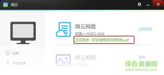 在微云主界面,微云网盘模块可以看到当前网盘的已使用容量信息,以及当前正在进行的同步信息