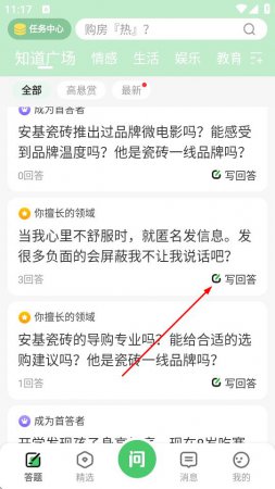 打开百度知道安卓版,先登录,然后点击"个人中心",选择左上角锯齿形状的按钮,进入"兴趣定制",设置好关注的分类与关键词。然后返回来,点击"兴趣",它会根据你设置的关键词,提供一批问题。如果有合适的问题,点击开就可以提交答案,如果没有就再刷新,就可以了。