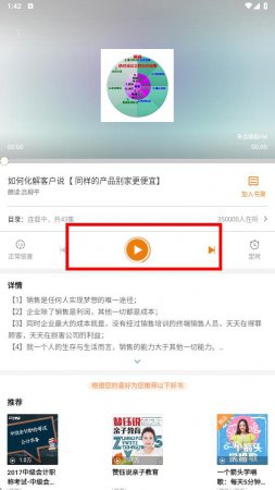 3、点击进入想听的音频详情页,点击播放按钮,即可开始收听音频内容。
