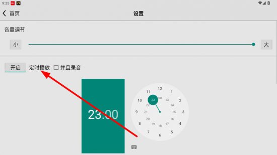 4、在设置页面中找到定时播放选项,点击开启并设置定时关闭的时间,完成定时关闭操作。
