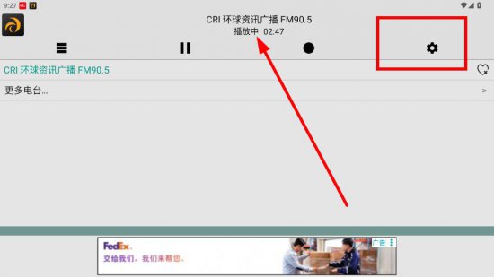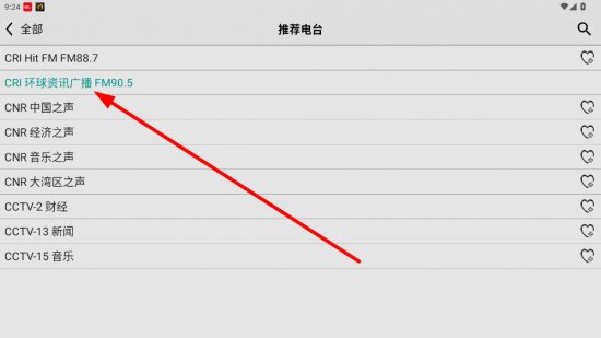 2、在推荐电台界面,选择要收听的电台如CRI环球资讯广播FM90.5。
