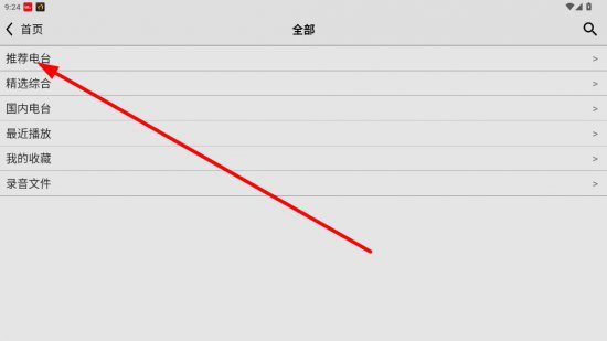 1、在龙卷风收音机首页,在电台列表页面,点击推荐电台,进入推荐电台界面。
