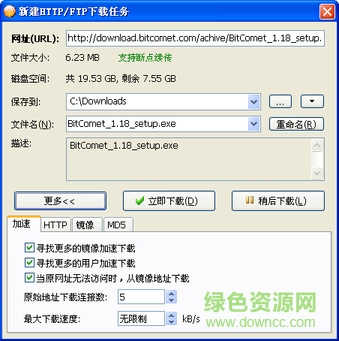 跨协议下载:BT任务可以自动查找 HTTP/FTP/EMULE 下载源,提高下载速度。