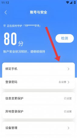 3、验证通过后,在手机绑定页面选择更换手机号码,输入新手机号码及验证码,完成换绑。