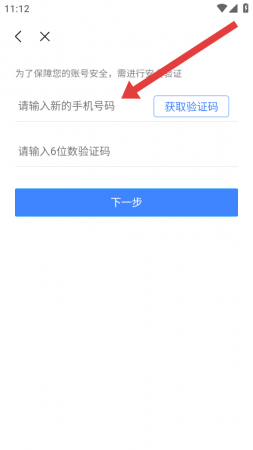 2、在安全验证的页面,需要输入原手机号码的验证码,点击下一步完成身份的验证。