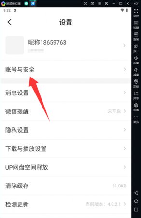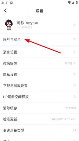 3、然后进入设置界面,在这里找到【账号与安全】功能选项并点击;