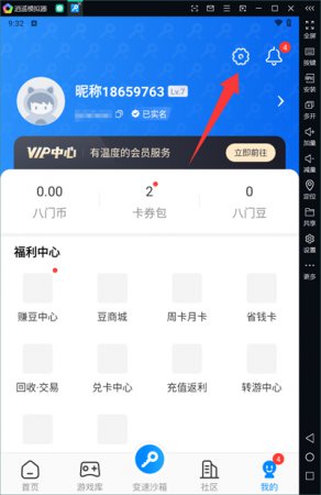 2、在社区页面右上角,点击设置图标进入设置界面。