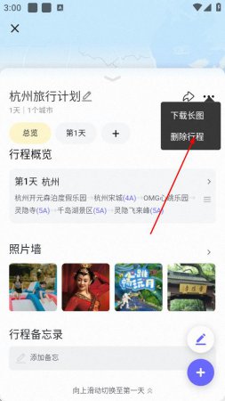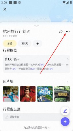 3、进入具体的旅行计划页面后,点击右上角的···图标。