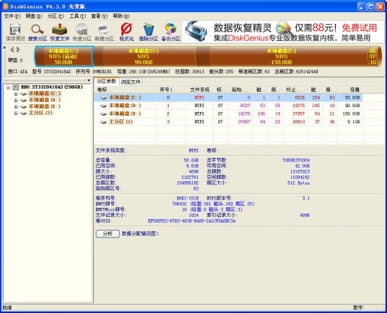 DiskGenius是磁盘分区及数据恢复软件。支持对GPT磁盘(使用GUID分区表)的分区操作。除具备基本的分区建立、删除、格式化等磁盘管理功能外,还提供了强大的已丢失分区搜索功能、误删除文件恢复、误格式化及分区被破坏后的文件恢复功能、分区镜像备份与还原功能、分区复制、硬盘复制功能、快速分区功能、整数分区功能、分区表错误检查与修复功能、坏道检测与修复功能。