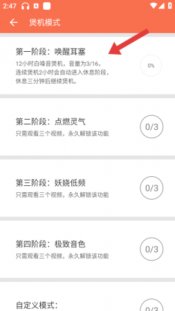 4、进入煲机模式的页面,需要选择对应的阶段,按照提示完成煲机。