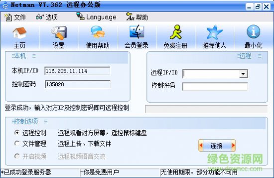 运行程序之后,点击软件界面上的“免费注册”按钮,注册一个免费帐号。需要测试的用户,可以连接我们提供的测试电脑