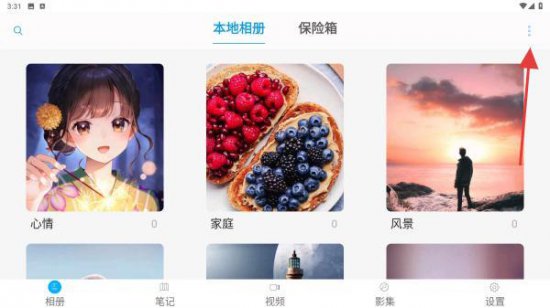 1、打开私密相册APP,在首页内点击右上角三个点的图标。