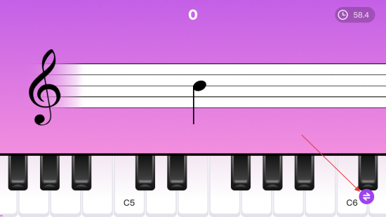 4、进入具体的认音练习界面后,即可开始练习,点击右下角的箭头可以更换键盘样式。