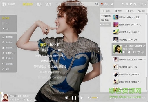 清新的封面图及歌手美图配合歌曲支持,自动调配。