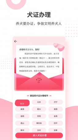 让全民规范养宠、文明养宠、科学养宠,让养宠变得和谐、幸福、舒心。平台从政府养犬管理切入,打造养宠周期内的一站式解决方案。公司提倡“规范养宠”,“科学养宠”,“开心养宠”。为政府在提高养犬管理实名率,杜绝养犬管理恶性事件,规范市民养犬管理行为提供从系统到技术全方面的支撑服务。