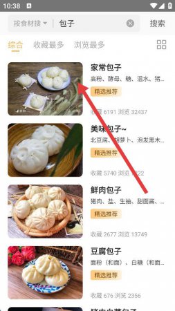 3、在搜索结果页面里,找到想要收藏的菜谱,点击进入菜谱详情页面 。