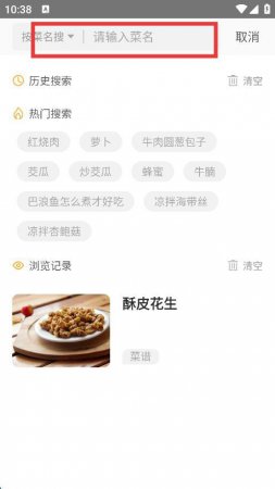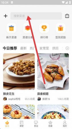 2、在弹出的搜索界面中,输入想要查找的菜谱名称点击搜索。
