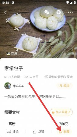 4、找到并点击带有星星标识的收藏按钮,即可成功收藏该菜谱。