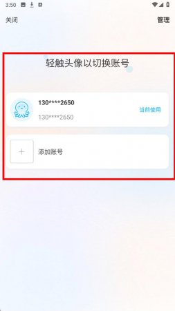 3、进入切换账号页面后,轻触想要切换的账号头像即可完成切换,若要添加新账号点击添加账号并按提示操作。