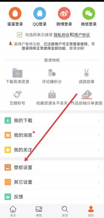 1、打开安卓壁纸APP,点击底部导航栏最右侧的我的,进入个人中心页面。
