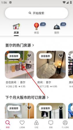 1、打开爱彼迎App,在探索页面浏览并选择你感兴趣的房源,点击进入房源详情页。