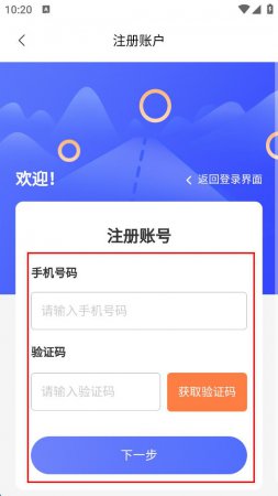 4、在注册账户页面,先在“手机号码”栏填写自己的手机号,点击“获取验证码”,在“验证码”栏填写收到的验证码,然后点击“下一步”,按照后续提示完成注册流程。
