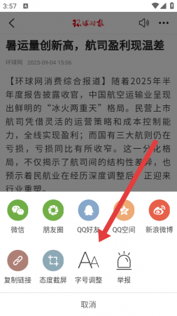 环球时报怎么调整字体大小