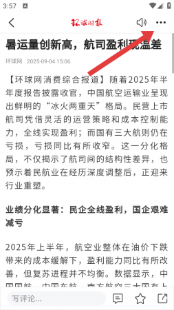 2、在新闻详情的页面,需要点击右上角的三个点图标,调出系统功能的菜单。