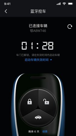 4、蓝牙钥匙功能,用户可以通过蓝牙来连接自己的钥匙,远程启动车辆。