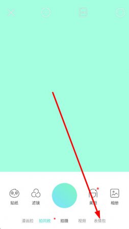 2、在拍摄页,切换到底部表情包选项,进入表情包专属拍摄模式,适配创意需求。
